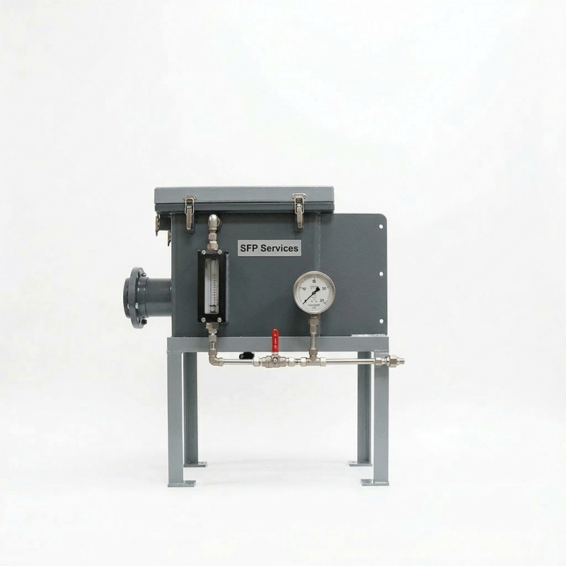 The SFP Services 4100250-F aerosol generator is designed to generate a sodium chloride aerosol which meets the requirements of EN 13274-1 and EN149, when operated at 7 bar [100psig] with 2% w/v Na. Cl. solution. It’s primarily designed for use in conjunction with a low flow sodium flame photometer.